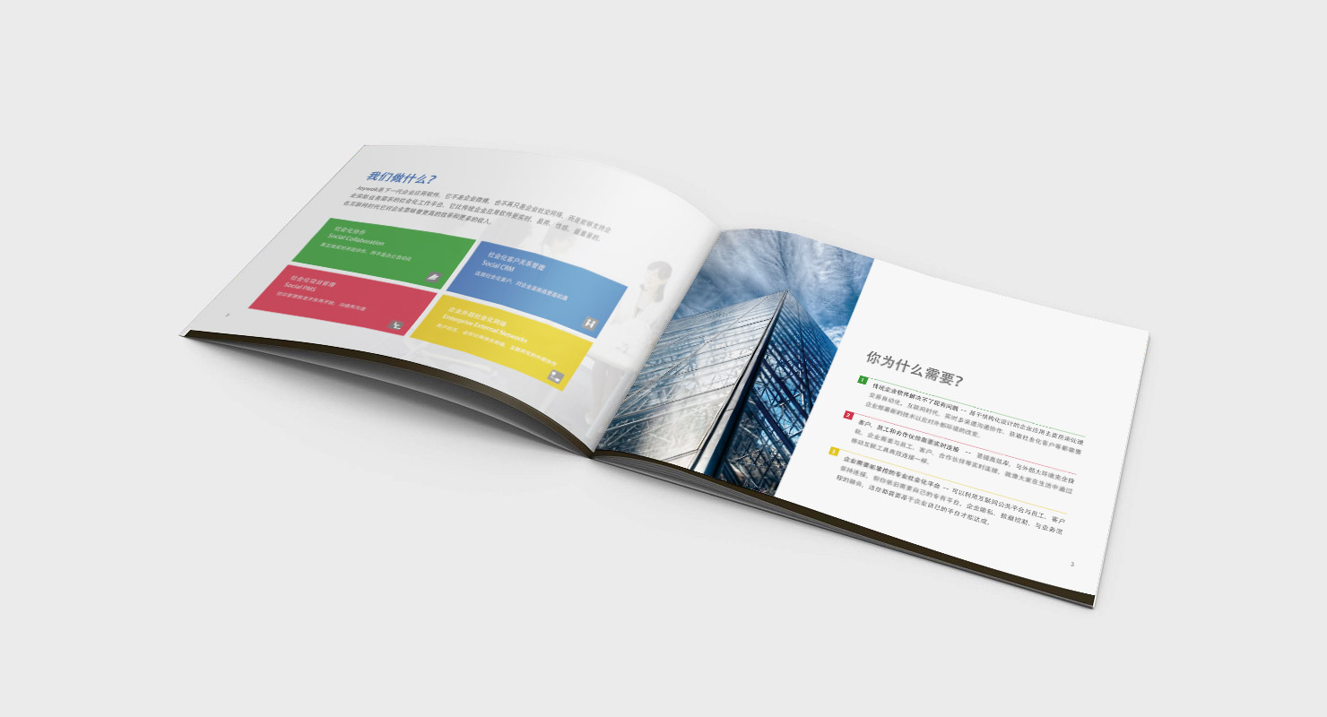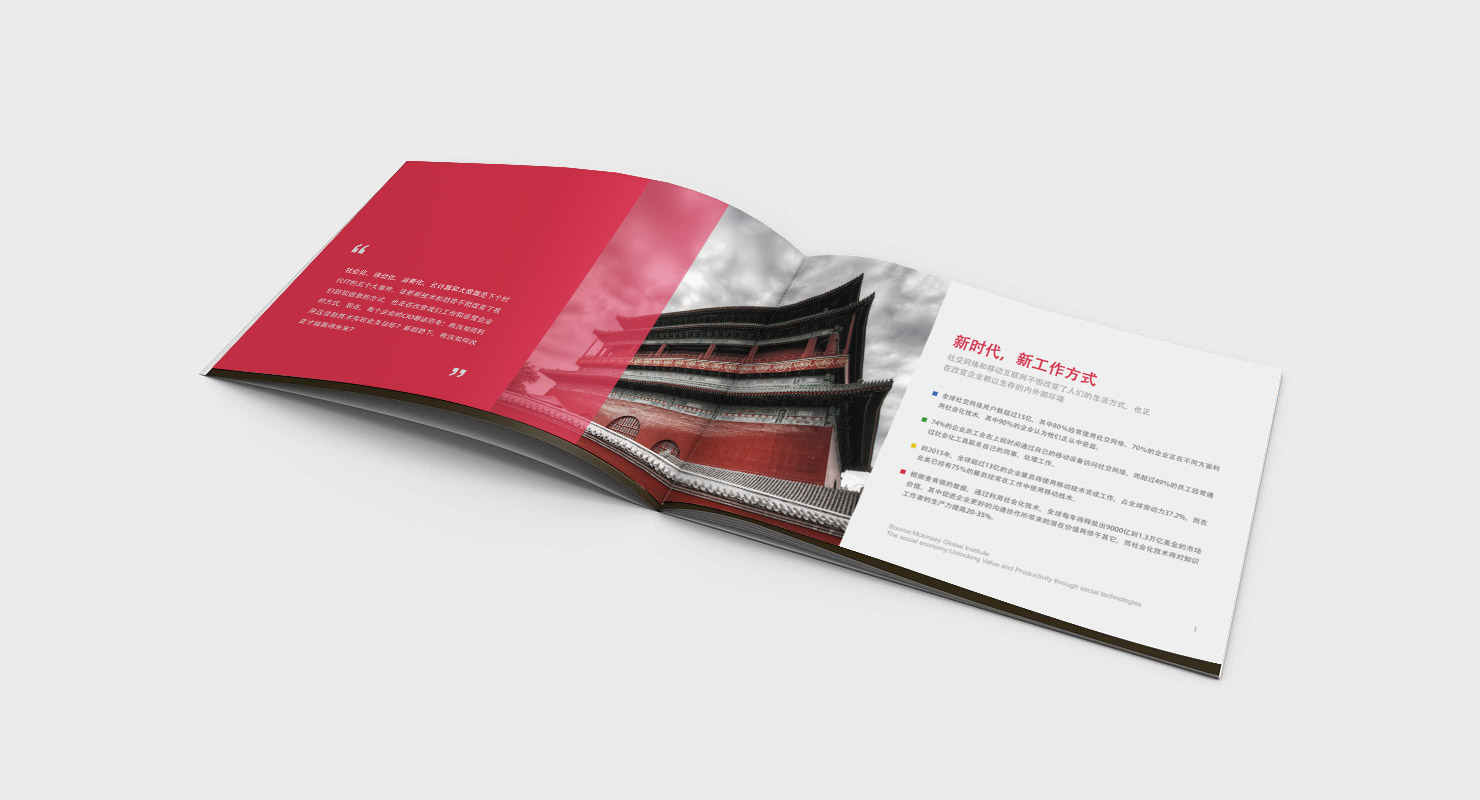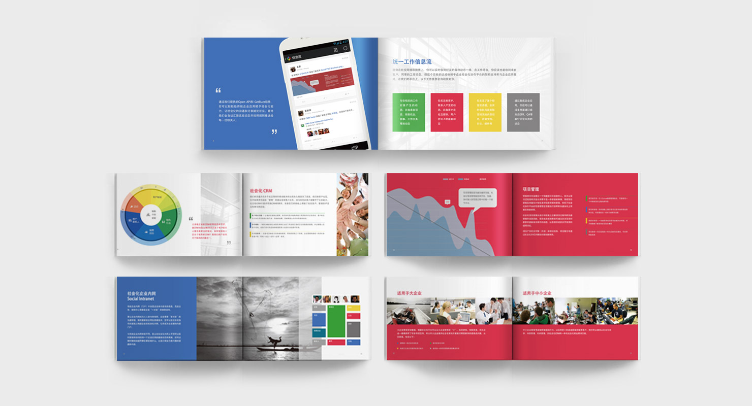 Joywok融合了社交网络、协作工具、效率工具、社会化CRM、项目管理,以及社交媒体监控等软件的主要特征,通过提炼企业中的社会化对象(Social Object)和构建企业的社会化层(Social Layer),将社会化能力扩展到企业的销售、市场、研发、运营、人力资源、项目管理等多个工作流程中,帮助企业真正实现社会化技术在企业的落地。 项目设计:画册设计