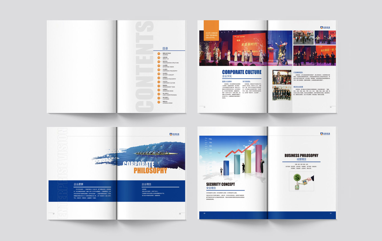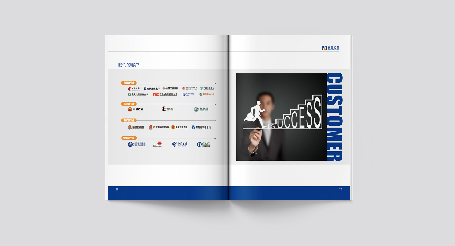 项目设计:集团宣传册、招商手册、VI应用系统、手提袋设计、员工手册等
